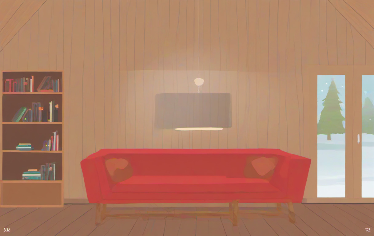 Drinnen im warmen Haus sitzt Lu gemütlich mit einer Tasse heißem Kakao.